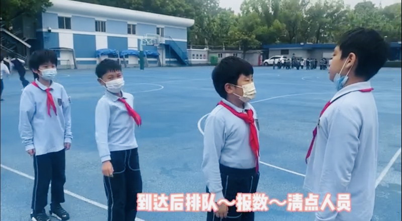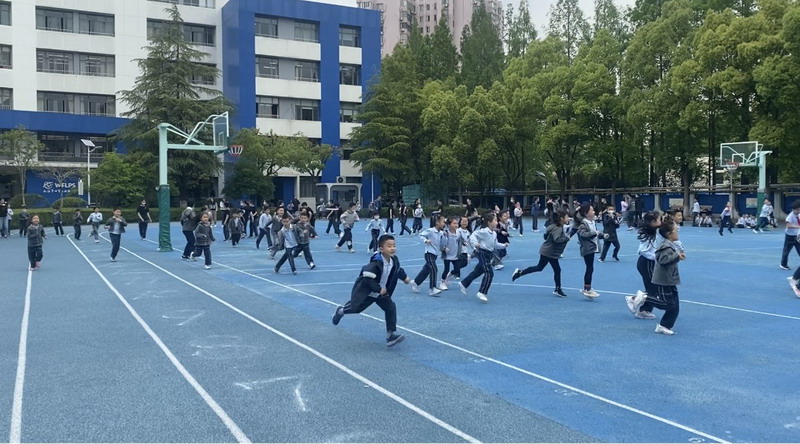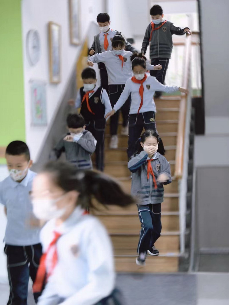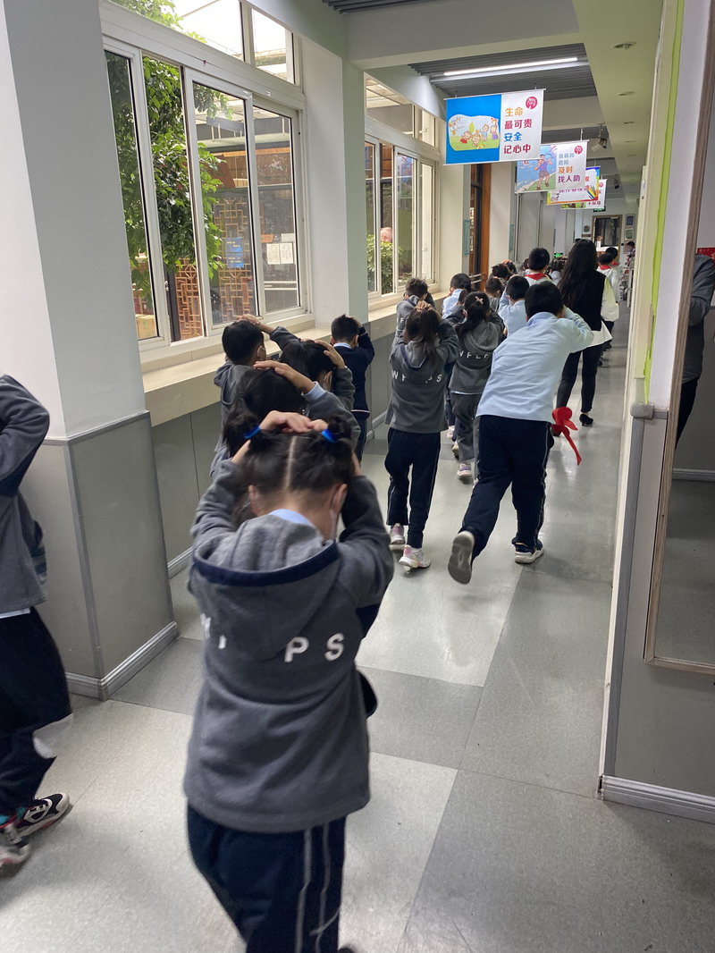 周五当天,随着警报声响,学生们迅速躲在书桌下,等待安全后在老师的安全引导下,迅速有序的快速逃离大楼,在空旷的操场集合...