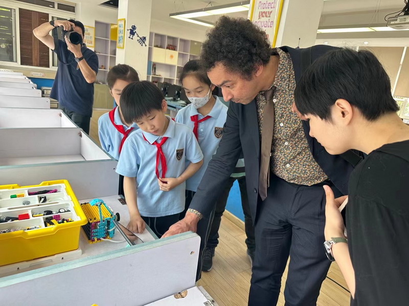 在校长张悦颖的陪同下,Stephan主任观摩了学校的科学课,了解学生使用Microbits软件来控制温度,进行面包发霉的实验。接着,他又来到了机器人课堂,课上同学们热情地向来宾展示如何通过编程来解决生活中的实际问题。而在美术和劳动课上,同学们则通过自己的记录、反思和总结来体现学习的整个过程。