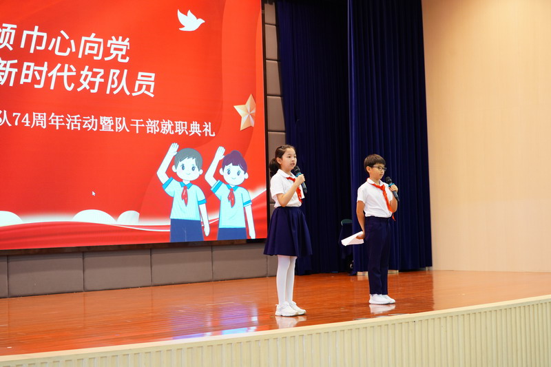 为迎接中国少年先锋队建队74周年,我校围绕“争做新时代好队员”的主题召开少代会,9月底,第十一届少代会正式会议暨队干部就职典礼在全体少先队员的翘首期盼下如期举行。