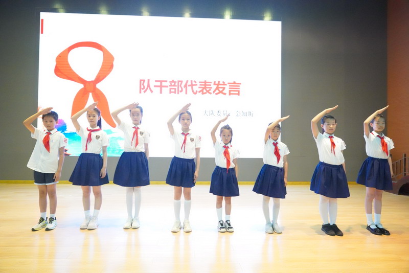 全体队员参加队干部就职典礼,积极参与少代会。