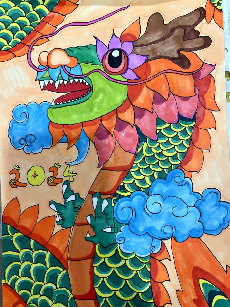 在龙年新春来临之际,世外小学举行了“龙腾盛世”龙年迎新绘画比赛。同学们以中国传统生肖“龙”为主题,用画笔表现对“龙”的独特理解和创造。本次比赛得到了同学们的积极响应,收到了临摹类作品近百幅,原创类作品更是超过了两百幅。同学们各展其才,挥洒着他们的创意和热情,为我们带来了一系列栩栩如生、充满新春气息的龙年画作。今天,让我们先一起来欣赏临摹类的“龙年”佳作吧!