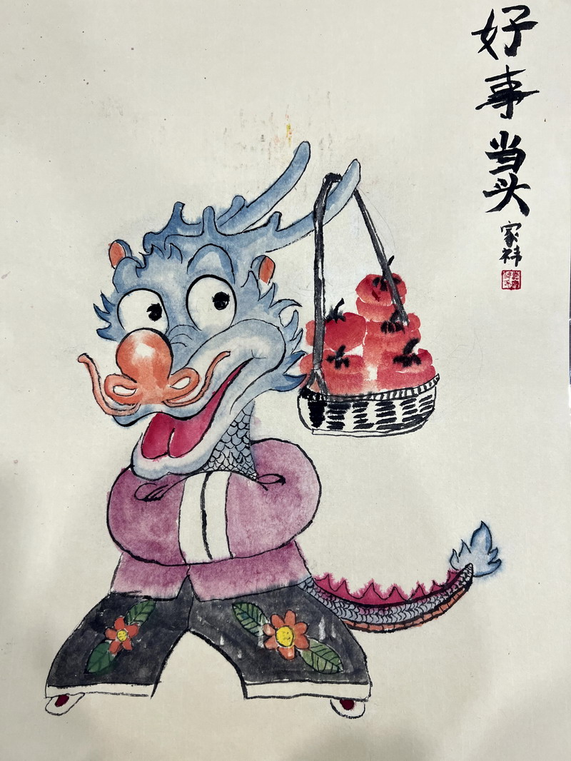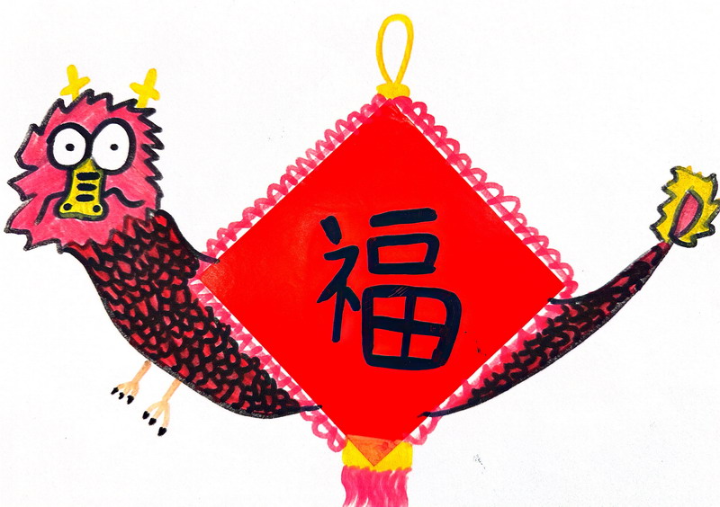 更多的同学则是在作品中融入了对新年的美好祝福。一句句“龙年大吉”,为大家送上最诚挚的祝福。