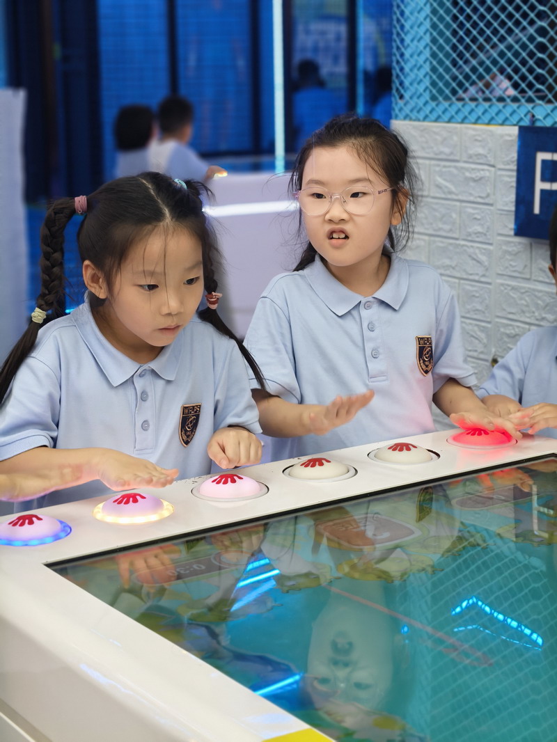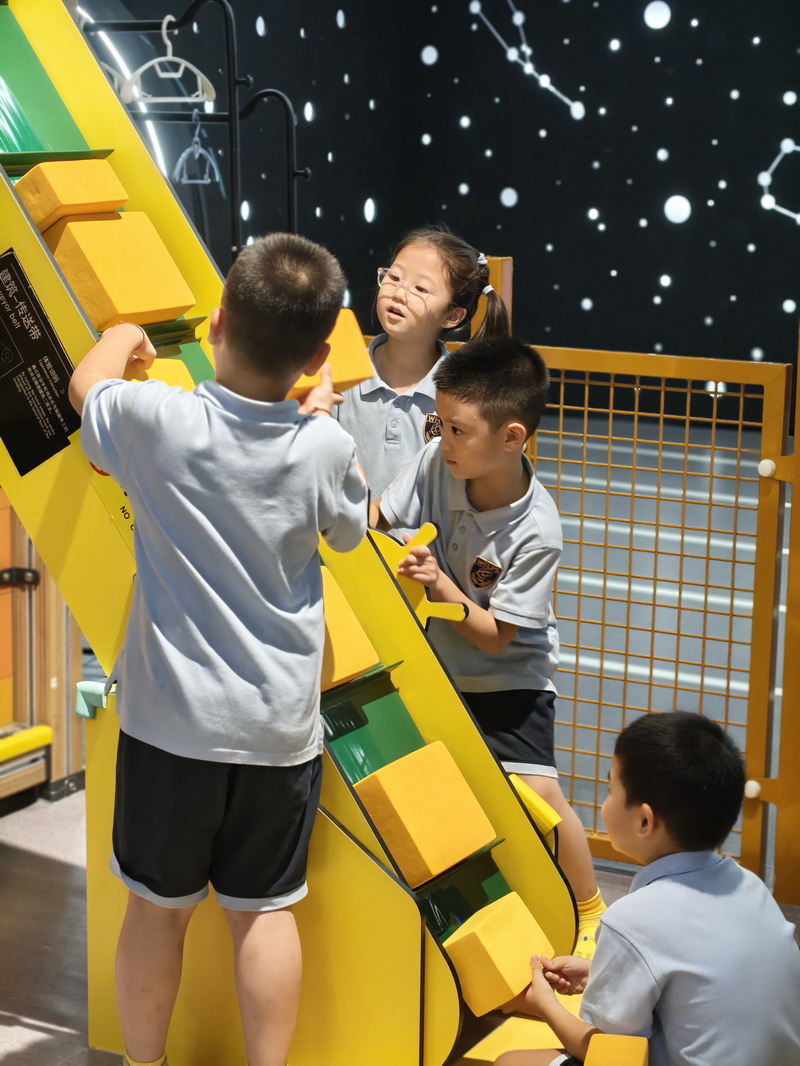 一年级的小朋友们仿佛踏入了一个未来的科学城堡——贝嘉堡儿童STEAM体验中心。他们的小手触摸着各种神奇的科学装置,亲眼目睹小球在复杂的轨道中飞速穿梭,通过组装简单的齿轮与杠杆,初步理解了机械动力如何让世界“动”起来。最让大家兴奋的是AI互动环节,他们不仅“驾驶”AI摩托车、比拼AI足球赛,还在体感游戏中指挥虚拟角色,亲身感受科技如何读懂人类的动作。这次旅程如同一把钥匙,为他们打开了探索科学世界的大门,激发了无穷的想象力和求知欲。