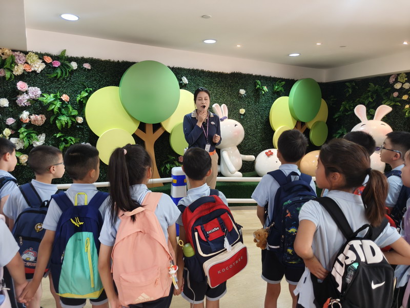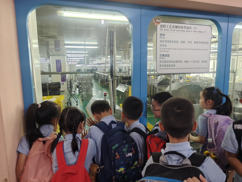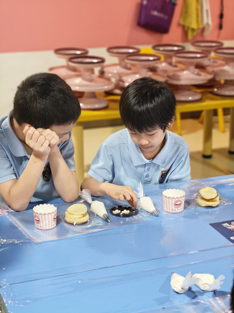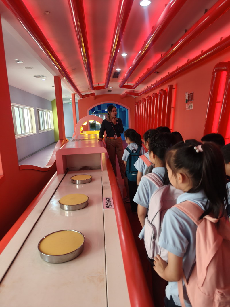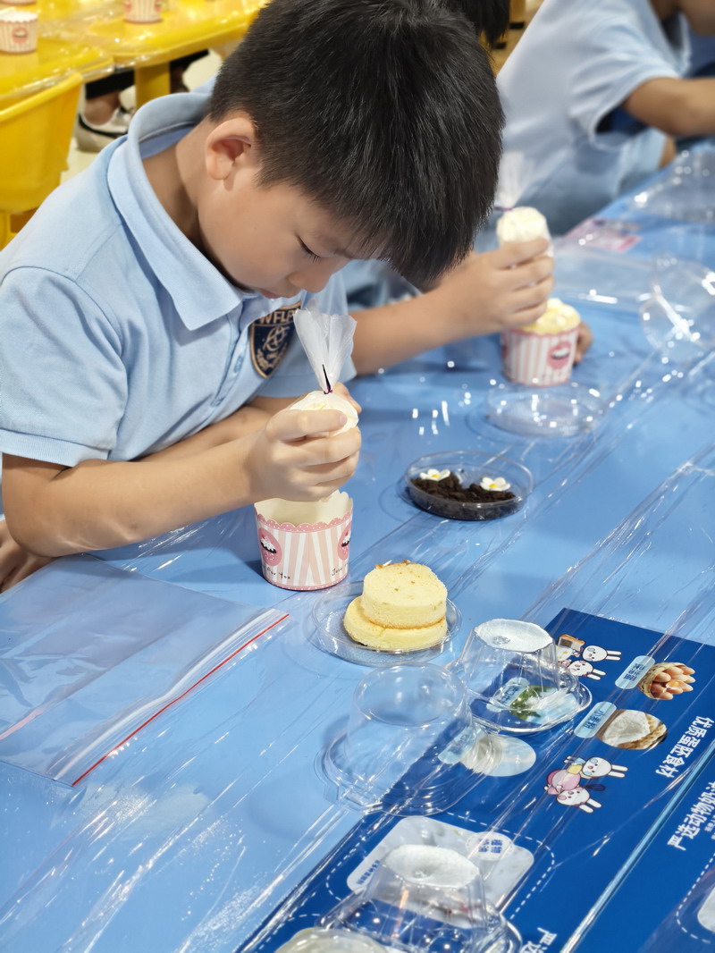 二年级的同学们开启了一场香气四溢的元祖梦工厂甜蜜之旅。在知识小课堂上,他们了解了从一粒小麦到松软面包的奇妙旅程,明白了均衡营养的重要性。透过明亮的观光走廊,大家亲眼见证了蛋糕在无菌工厂里如何经过一道道严谨的工序制作而成,对食品卫生有了最直观的认识。在梦幻剧场,有趣的互动问答让欢声此起彼伏。而当孩子们戴好手套,亲手制作蛋糕时,整个会场充满了创造的喜悦——他们小心翼翼地涂抹奶油,用心地摆放巧克力装饰,不仅学会了简单的烘焙技能,更在合作与分享中,深刻体会到了“一分耕耘,一分收获”的甜蜜真谛。