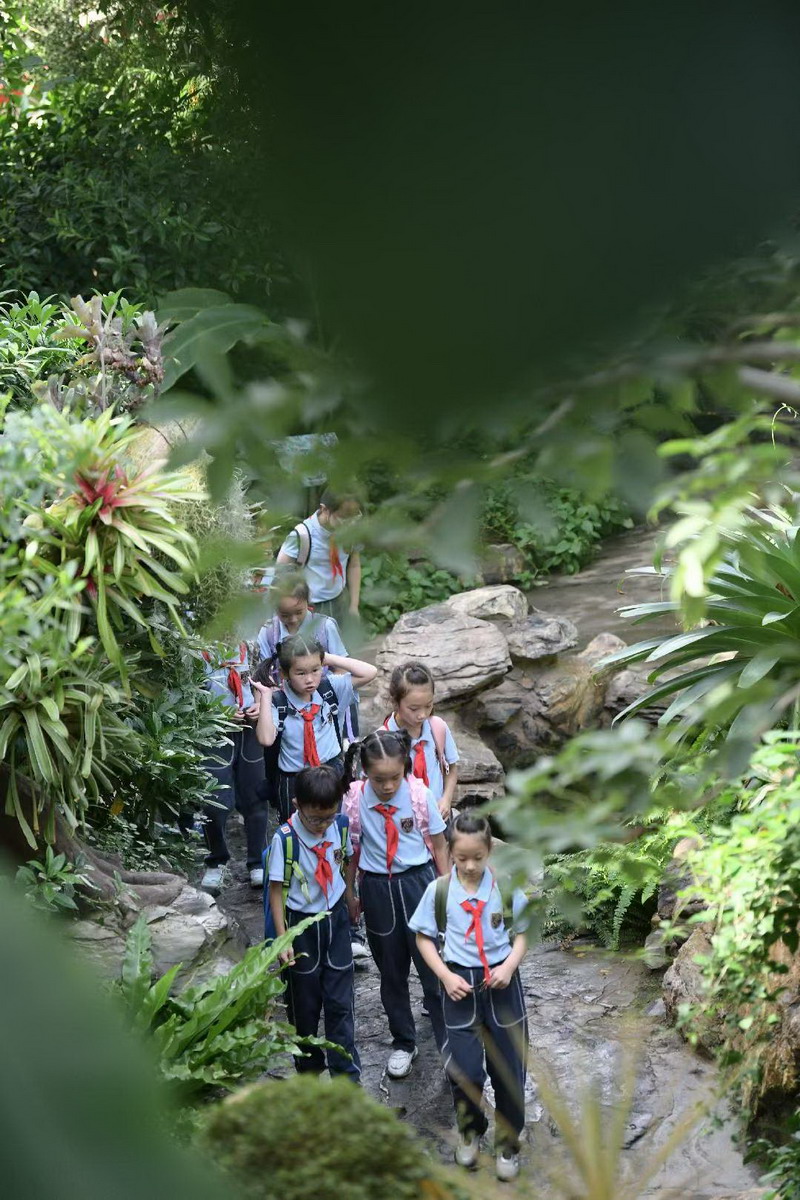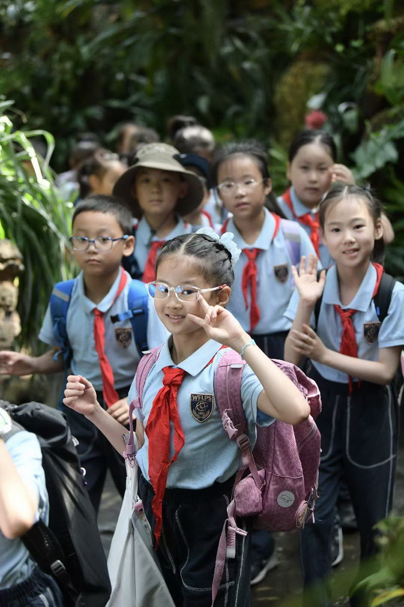 三年级的同学们在辰山植物园完成了一次深度的自然探秘。在巨大的展览温室内,他们穿梭于沙漠、雨林等不同生态区域,认真观察着形态各异的仙人掌和罕见的热带植物,仔细记录下它们的生长特点。一场关于植物种子传播的4D电影,更是让大家身临其境,感受风的力量、水的流动,甚至仿佛被调皮的小动物蹭过脚边,在惊叫与欢笑中理解了植物生命的顽强与智慧。随后的户外活动中,孩子们在如画的秋色里奔跑、游戏,弯腰捡起一片片形状各异的落叶,用最纯粹的方式感受秋天的温度与色彩,加深了对大自然的热爱与敬畏。