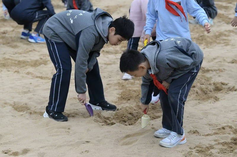 四年级的师生们进行了一场充满使命感与挑战的“远航”。登上被誉为“航天功勋船”的远望1号,甲板上、船舱内都留下了他们探寻的足迹。聆听讲解员讲述它追星揽箭、远望大洋的故事,同学们的民族自豪感油然而生。在实践中,他们学习了极具航海特色的“水手结”,从生疏到熟练,锻炼了动手能力与耐心。下午的公园寻宝与学科盲盒挑战更是将活动推向高潮,孩子们需要灵活运用语数外知识来破解题目,最终兑换心仪的奖品。这一天,爱国情怀、实践精神与学科知识巧妙地融为一体,铸就了独特的成长体验。