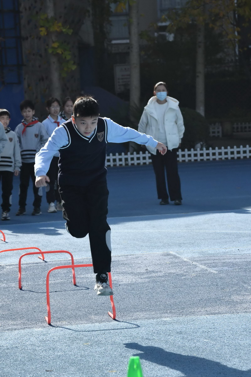 趣味障碍跑的赛道上,小选手们化身“闯关小勇士”,跑步、跳跃、爬行等等,每一个动作都干脆利落,冲过终点时扬起的笑脸比阳光更灿烂。