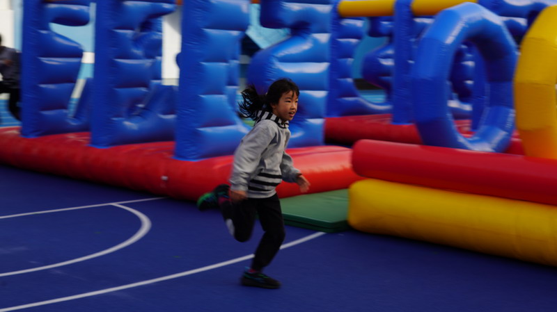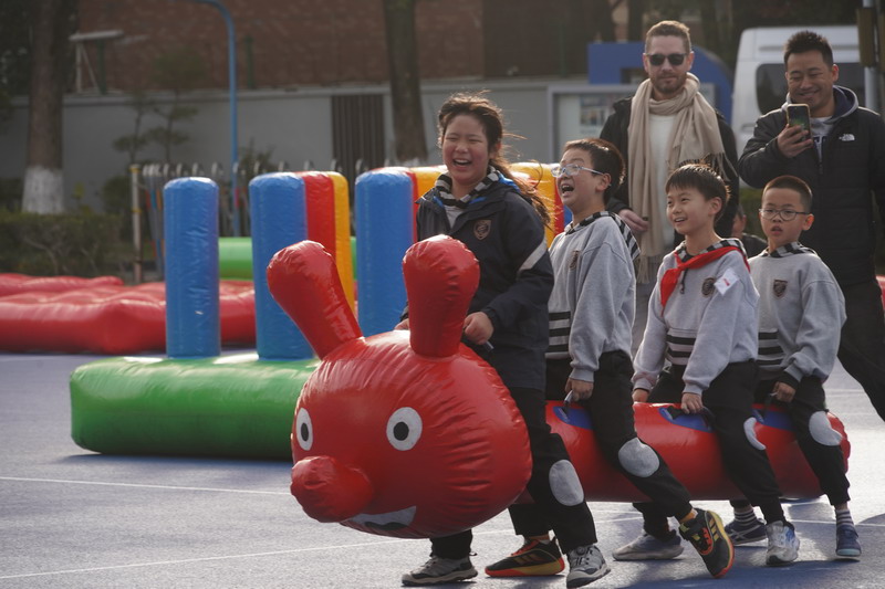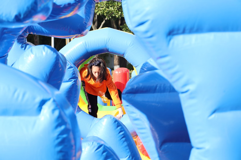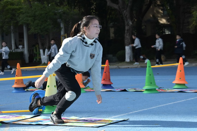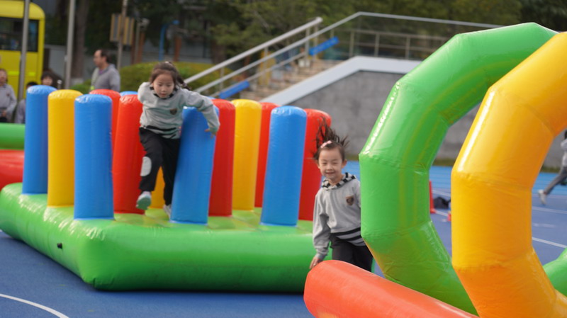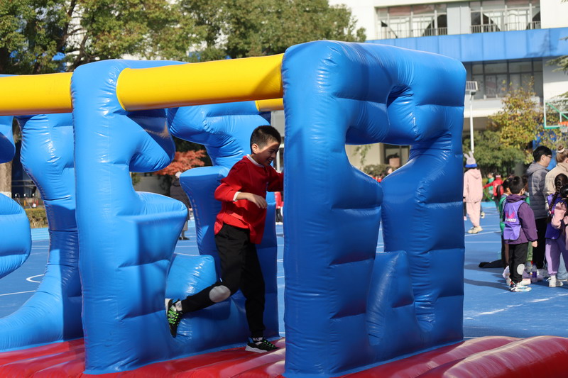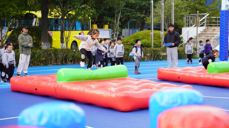 “极限挑战”的障碍赛场上,同学们跨过、钻过、跑过一个个大大的充气障碍,小小的身影在阳光下格外灵动,展现着不服输的韧劲。