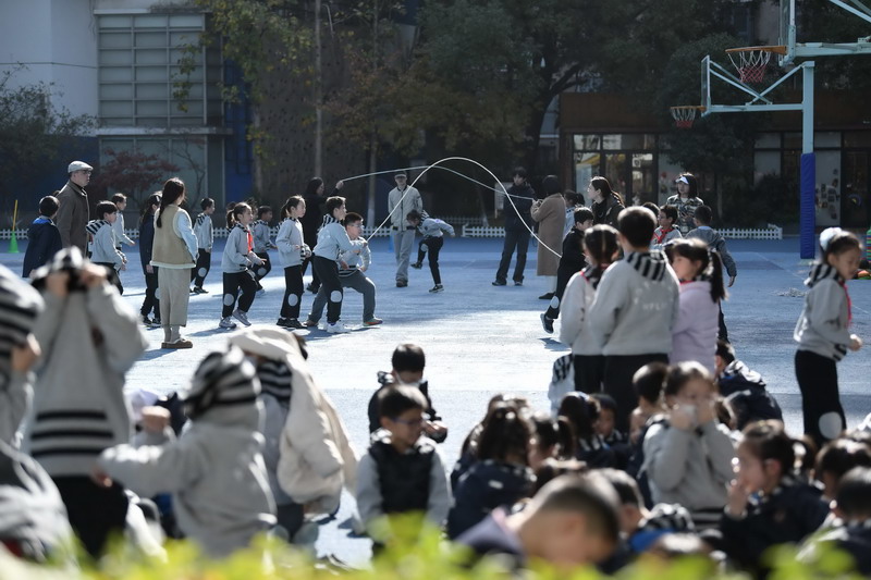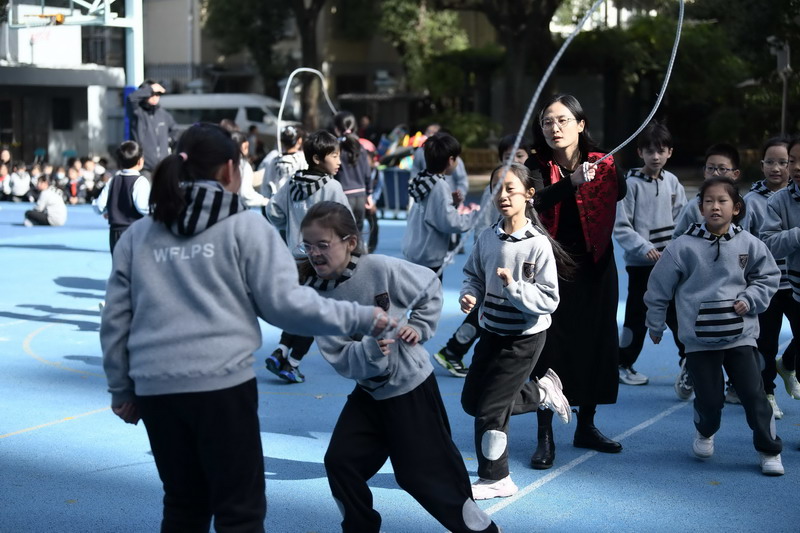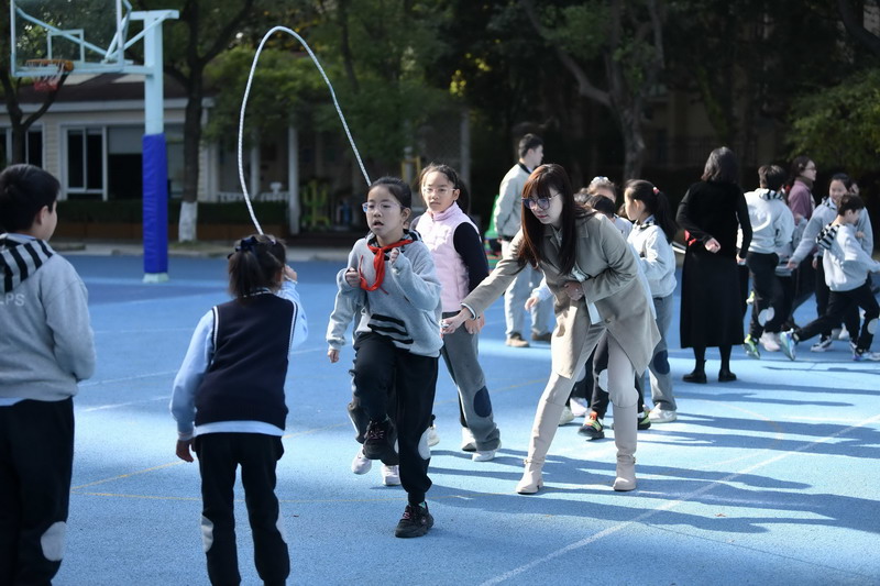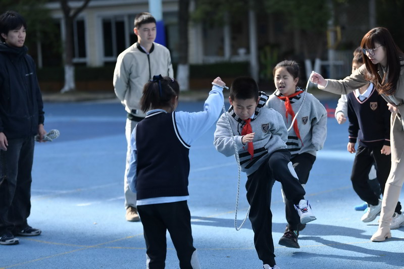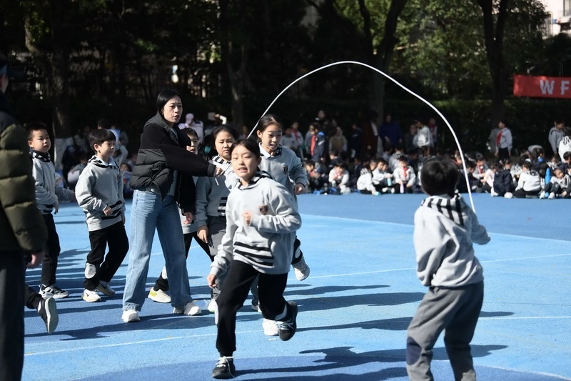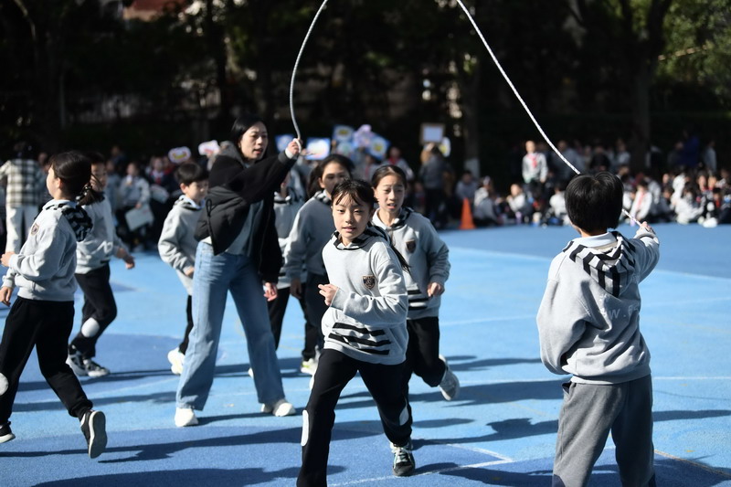 “‘绳’采飞扬跳绳”的赛场,长绳如彩虹般翻飞,队员们默契配合,双脚轻盈跳跃,计数员的声音随着跳绳节奏不断攀升,当突破班级纪录时,人群中瞬间爆发出欢呼。