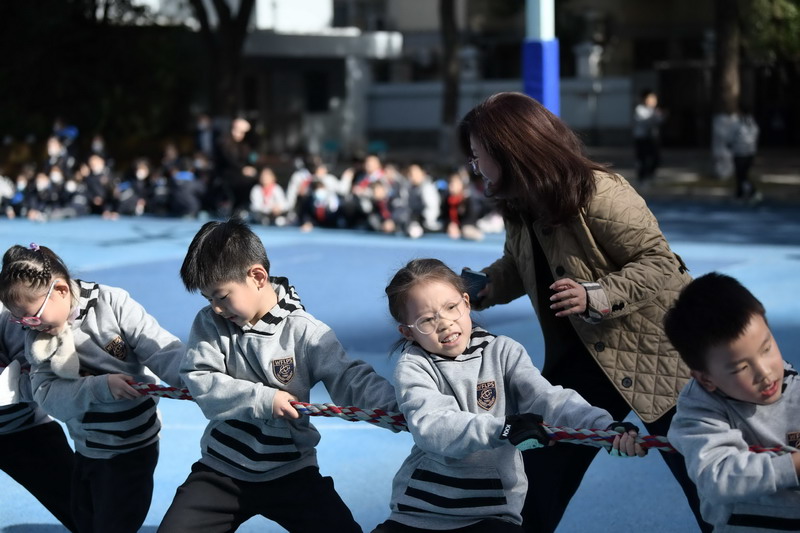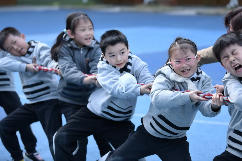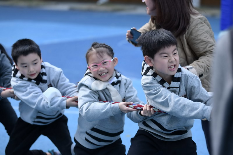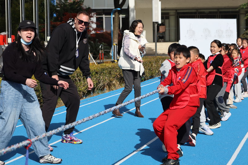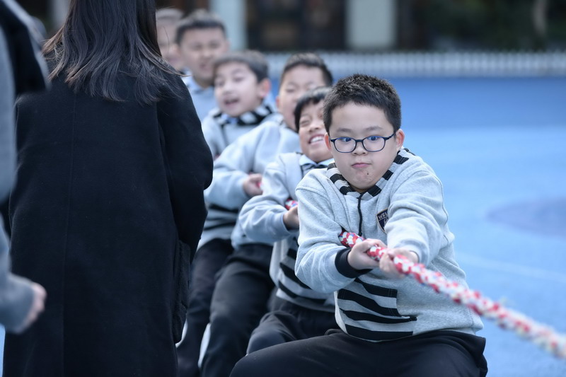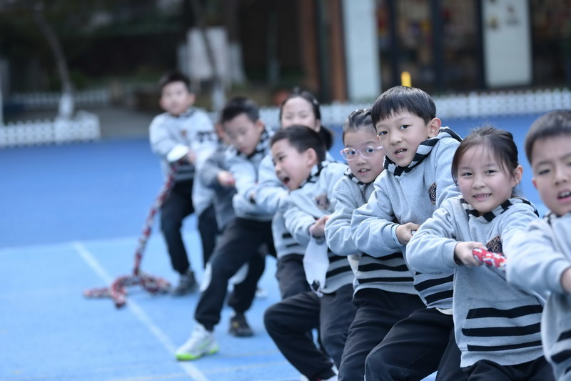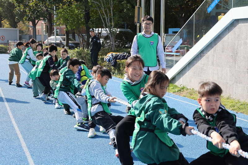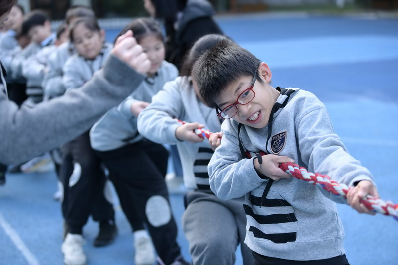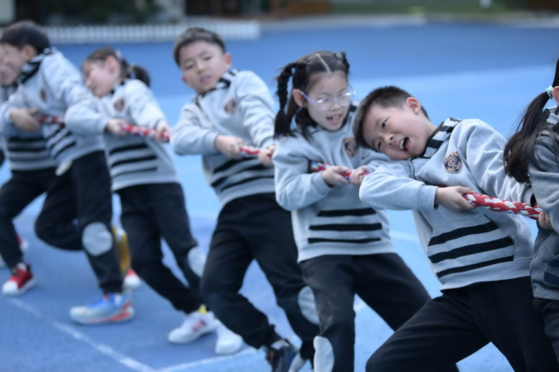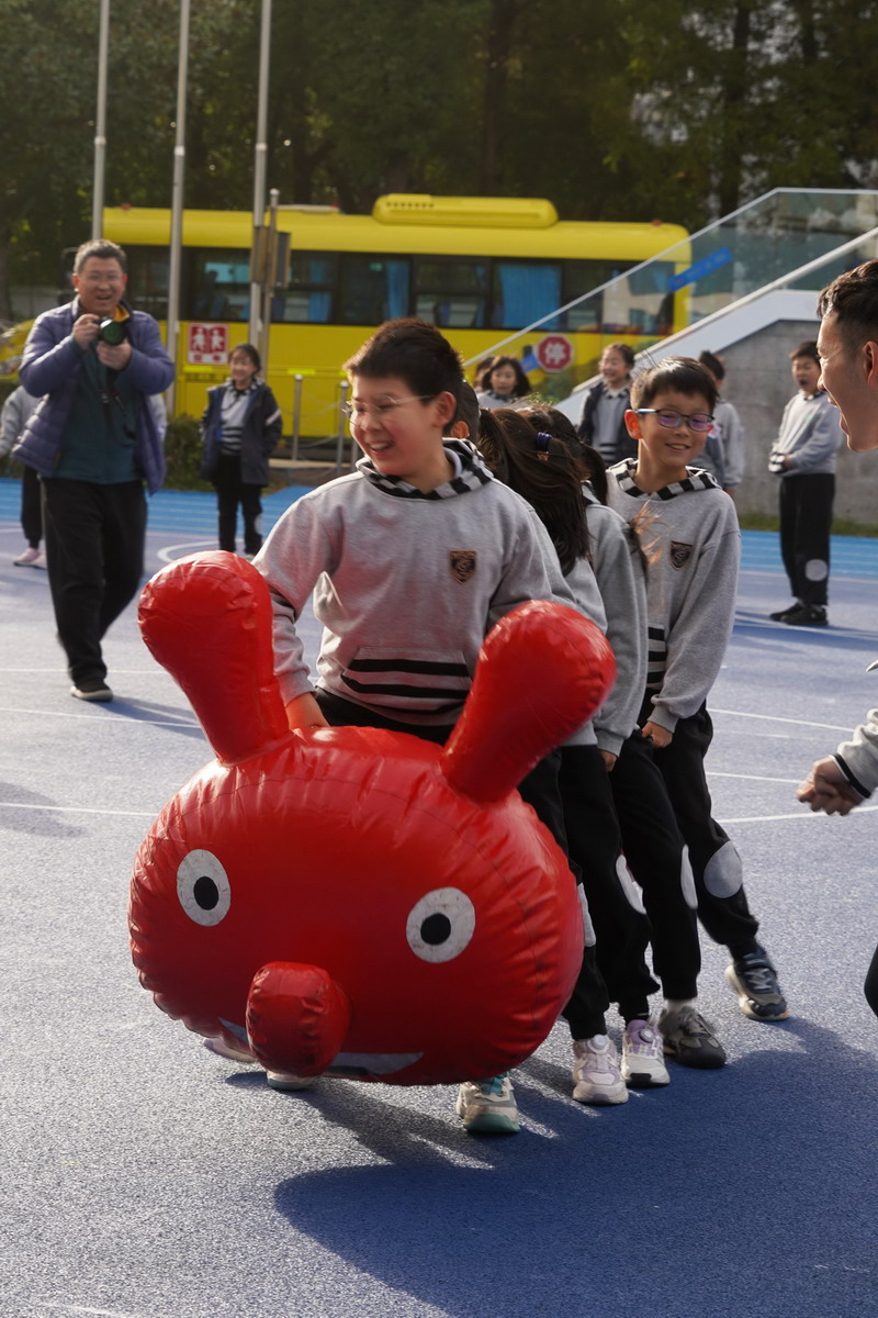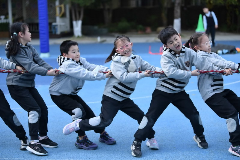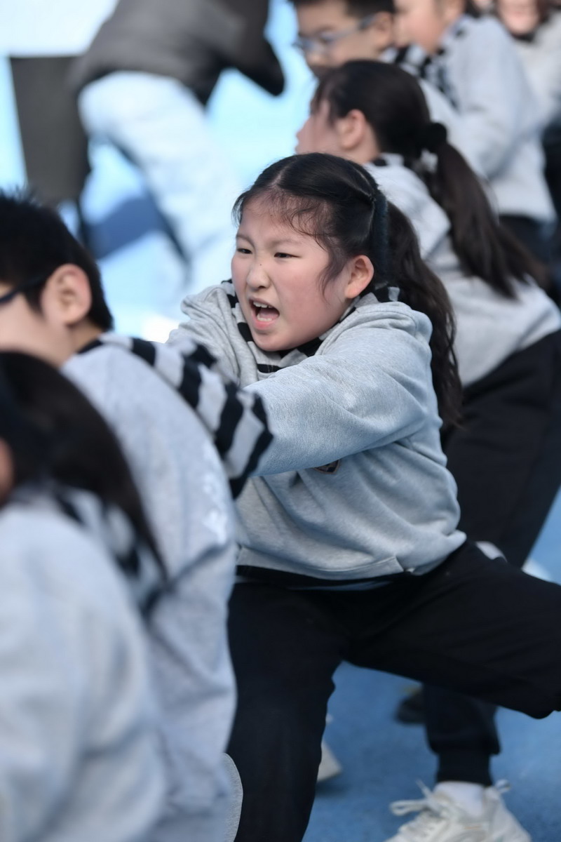 更令人热血沸腾的是特别设置的师生对抗赛。平时温柔儒雅的老师们此刻化身 “超级大力士”,撸起袖子、紧握麻绳,与小选手们展开激烈角逐。赛场边,加油声、呐喊声、欢呼声此起彼伏,师生们不分彼此、全力以赴,每一个奋力拼搏的身影都闪耀着团结的光芒。