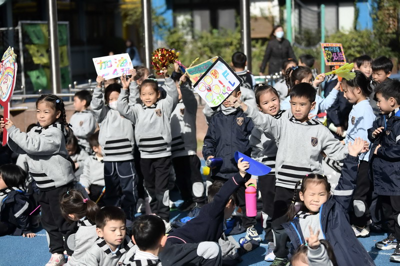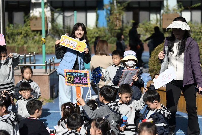 “虫虫特工接力”中,小选手齐坐“毛毛虫”上,耳边是队友们“加油!再快一点”的热情呐喊。