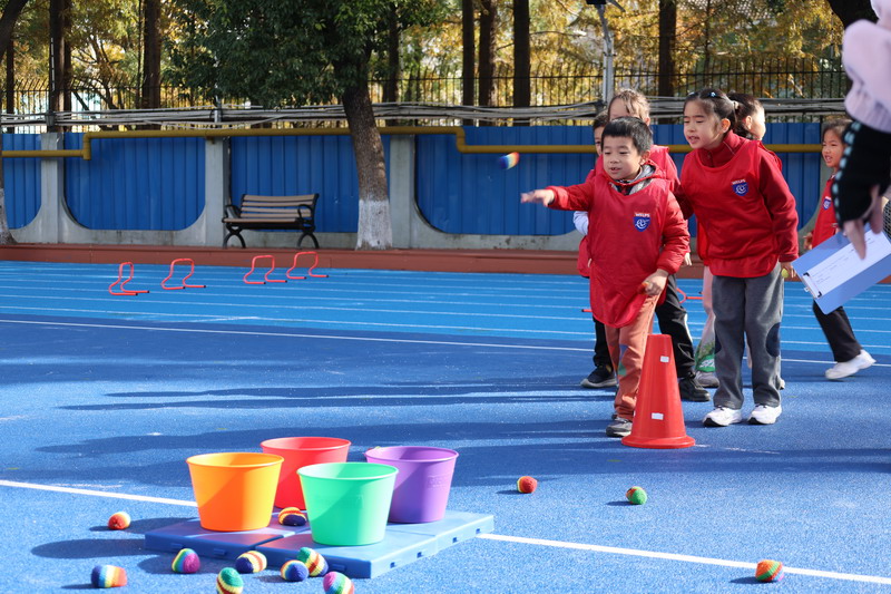 四色彩球投掷现场,孩子们屏息凝神、瞄准目标,每一次精准投掷都伴随着队友们的欢呼喝彩,专注与喜悦在赛场弥漫;