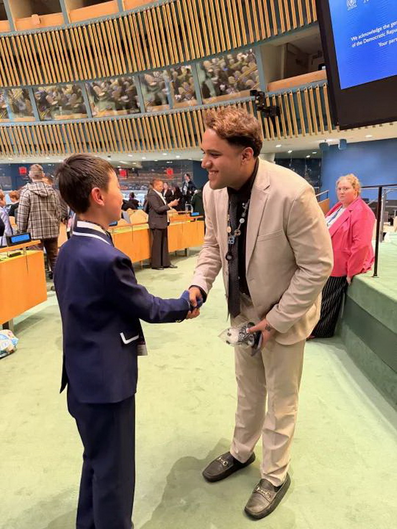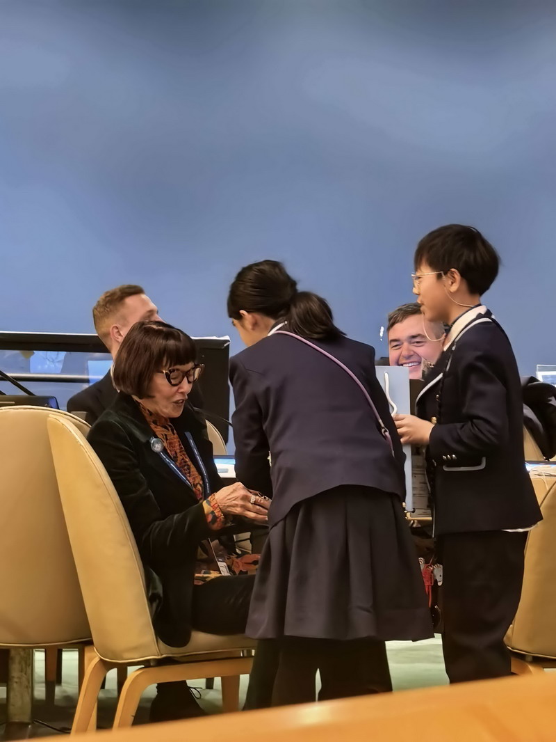 文化是行走的名片,礼仪是跨越国界的语言。同学们在象征全球多边对话的联合国会议中心,留下了温暖的一笔。