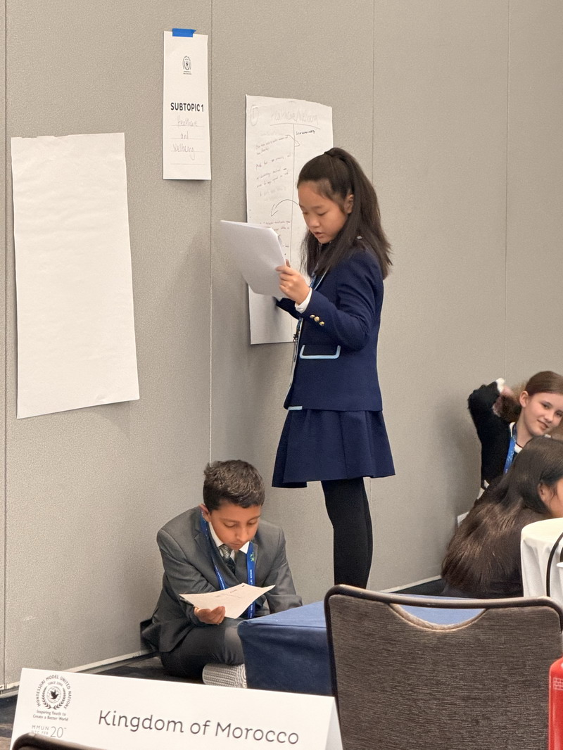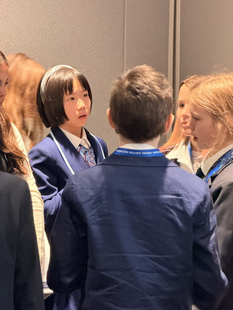 同学们分别代表沙特阿拉伯、塞尔维亚和贝宁,在不同委员会中,围绕水资源、全球合作等国际热点议题,与全球青少年代表展开讨论和磋商。