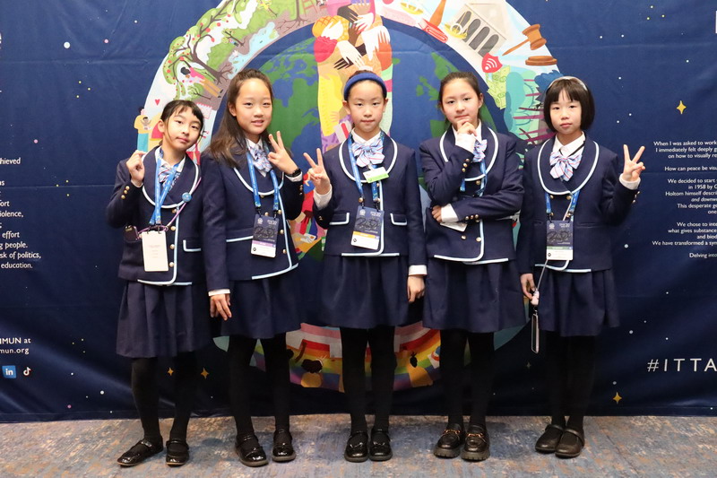 在联合国总部参访时,同学们驻足于《破碎的地球》与《打结的手枪》展品前,从具象艺术中读懂“守护家园”“珍爱和平”的深意;同学们探访经社理事会厅、安理会会议厅、联合国大会厅,近距离感受国际议事的庄重氛围,理解联合国“维护和平、促进发展”的核心使命,直观体会“大国责任”与“全球协作”的重量;在MMUN开幕式上,同学们身着正装,从容步入联合国金色大厅,向与会其他代表传递尊重与友好,这也是中国少年文化自信的生动表达。