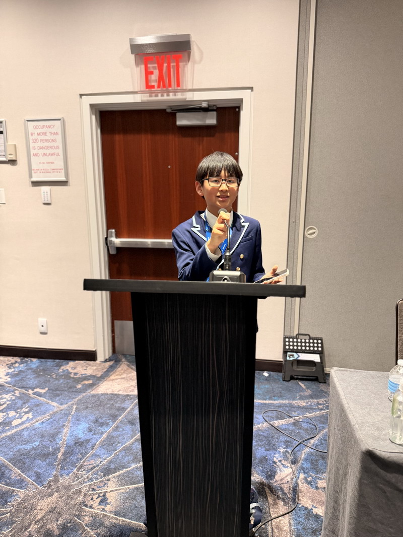 在闭幕式宣读草案的发言环节,张君雅同学作为代表,清晰阐述本国立场,用数据与案例支撑观点,逻辑清晰、表达流畅,赢得了全场代表的认可。
