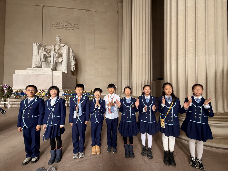 在林肯纪念堂前,他们用流利英文发表属于自己的“I Have a Dream”:有人渴望成为科学家探索未知,有人立志成为和平使者延续联合国使命,有人期盼搭建文化桥梁让不同文明对话。每一段演讲都饱含热忱,既展现了研学路上的视野开阔,又传递出新时代少年的责任与担当。